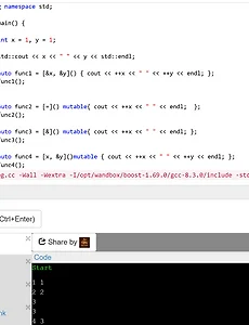 C++/0x09-lambda express2 lambda express 사용하기 ][ captures lambda express 사용하기 ][ captures test해보기 : https://wandbox.org/permlink/fWfHGJXzDpMEBzjX ■ the basic syntax ■ 컴파일 및 실행해보기 2019. 2. 27. lambda express 사용하기 ][ the call operator lambda express 사용하기 ][ the call operator test해보기 : https://wandbox.org/permlink/3bwgkuIXyb83E0rK ■ 컴파일 및 실행해보기 2019. 2. 27. 이전 1 다음